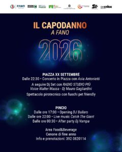 A chiudere i festeggiamenti, uno spettacolo pirotecnico pet friendly, simbolo di una scelta innovativa che conferma Fano tra i Comuni pionieri di eventi luminosi a basso impatto sonoro. Un Capodanno che unisce divertimento, rispetto per l’ambiente e attenzione agli animali, nel segno di un Natale partecipato anche grazie al coinvolgimento di oltre 80 attività commerciali, protagoniste dell’iniziativa “Natale 2025 a Fano: insieme per illuminare la città”. Un progetto urbano che cresce ogni anno e che fa di Fano un modello riconoscibile di festa, identità e comunità.